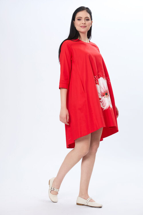 Rochie amplă roșie asimetrică pictată manual “Ifira“