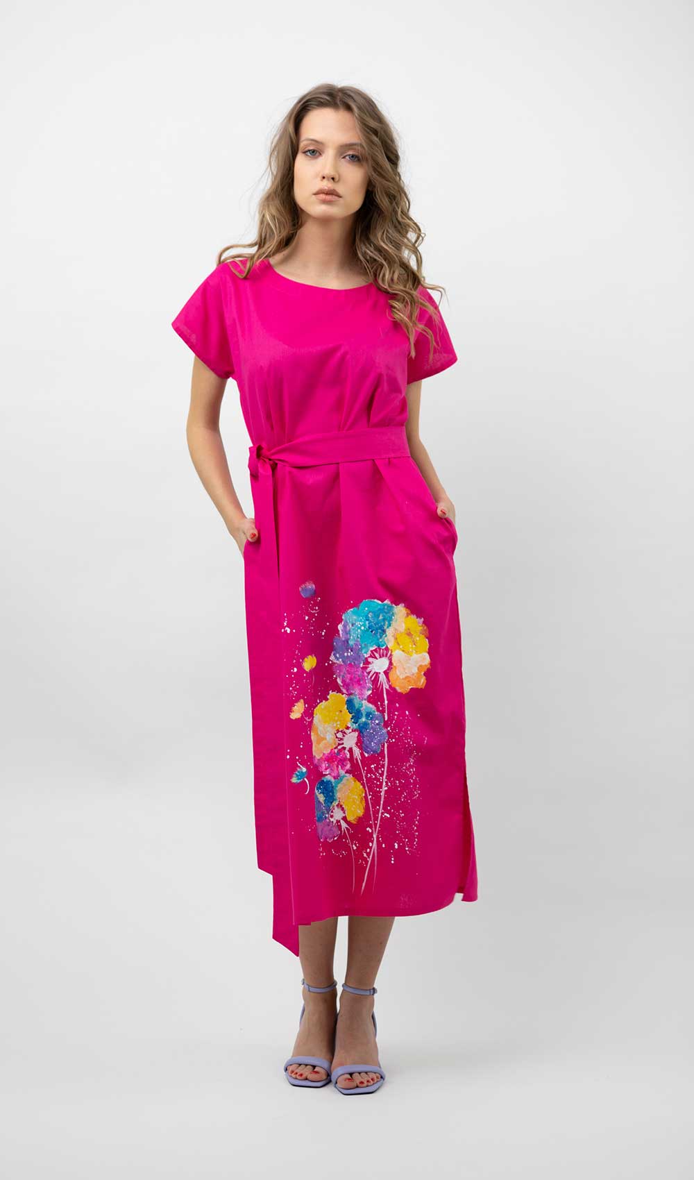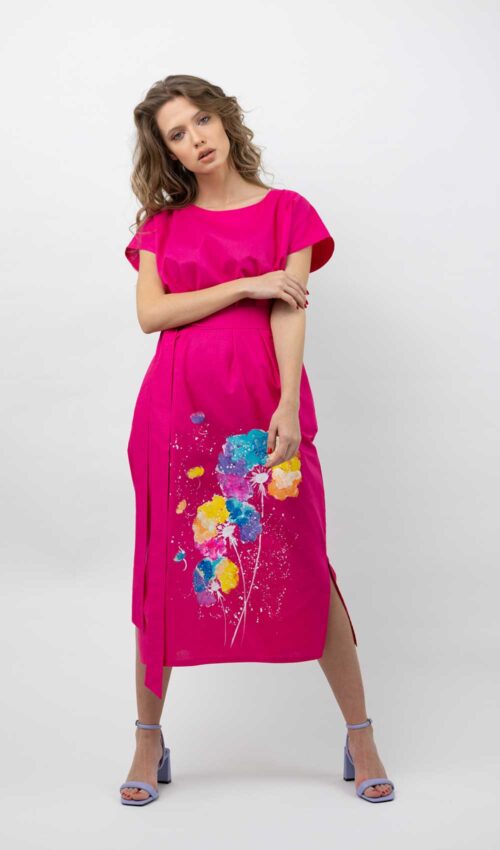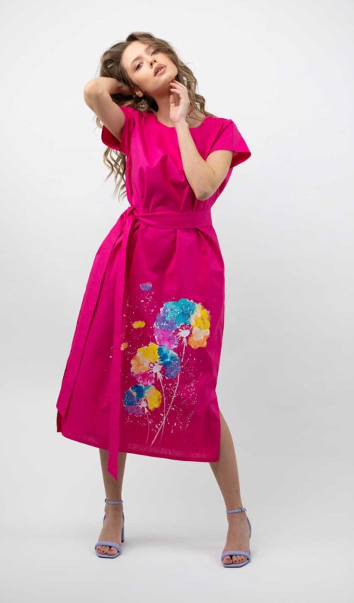 Dacă îți plac culorile, materiale naturale și piesele vestimentare cu personalitate cu siguranță rochia “Yari” va fi una dintre preferatele tale. Este realizată din bumbac, are o croială dreaptă, buzunare ascunse și o pictură multicoloră realizată manual. O poți purta, fie legată în talie cu cordon, sau simplu, dreaptă. Este foarte comodă și îți va da o energie bună prin culorile pe care le are.