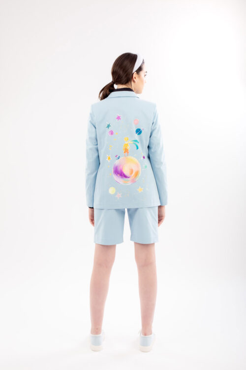 Un sacou clasic, realizat din bumbac plin, într-o nuanţă perfectă pentru acest sezon, dar cu un accent de personalitate realizat prin pictura de pe spate. Este genul de piesă care te va scoate din anonimat şi care te va ajuta atunci când nu stii ce să porţi. Pictura de efect, realizată manual cu materiale speciale pentru textile este accentul care face ca “Antoine” să fie o piesă originală.